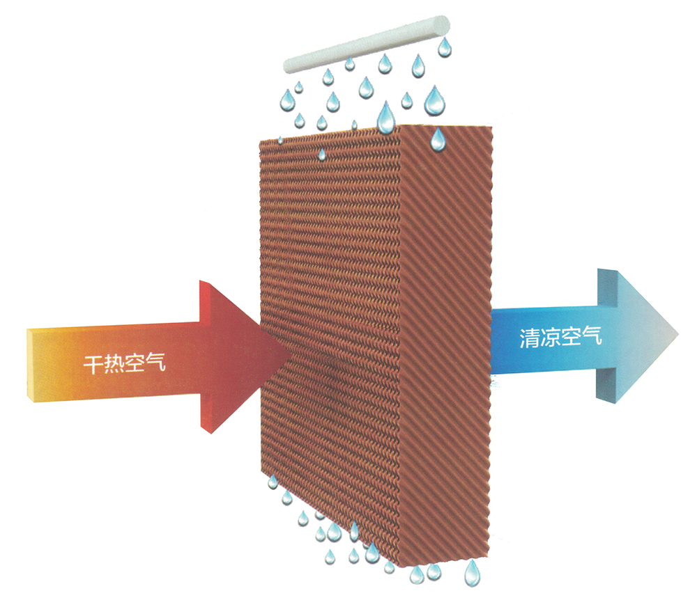 其特點是:有良好的吸水性能和通風性能,質地結實、耐水浸泡而不變型;耐腐蝕,正常使用壽命可超過5年。“科瑞萊”使用的蒸發濕簾,其換熱面積為表面積的100倍,因而降溫效果顯著。
